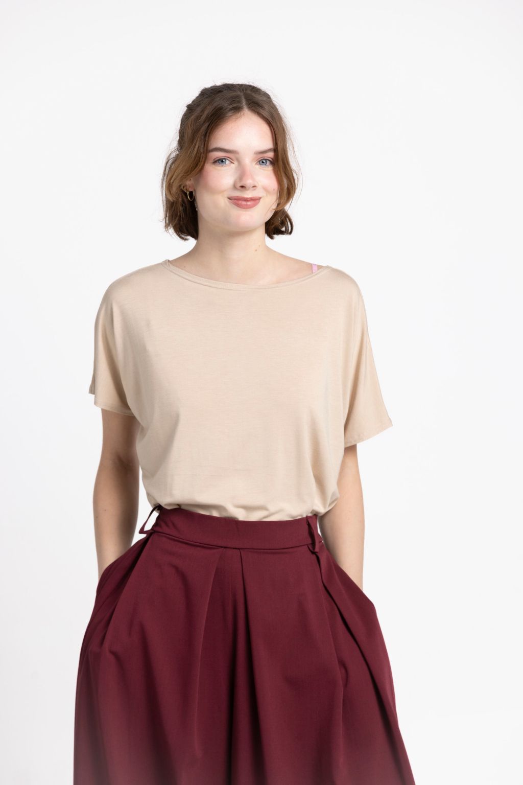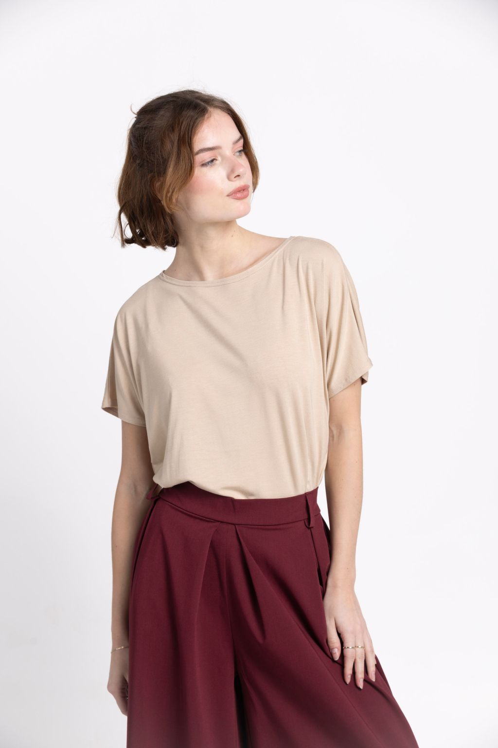 BAMBUSOVÉ TRIKO "MILA" - KRÁTKÝ RUKÁV - KIMONO STŘIH - BÉŽOVÉ