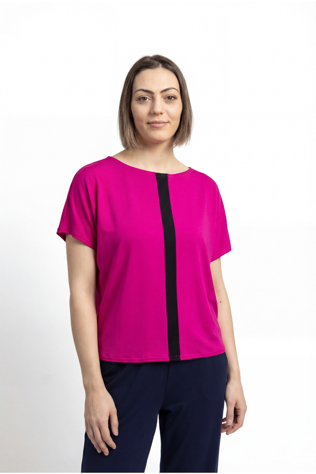 BAMBUSOVÉ TRIKO - KRÁTKÝ RUKÁV - CYKLÁMOVÉ S PRUHEM