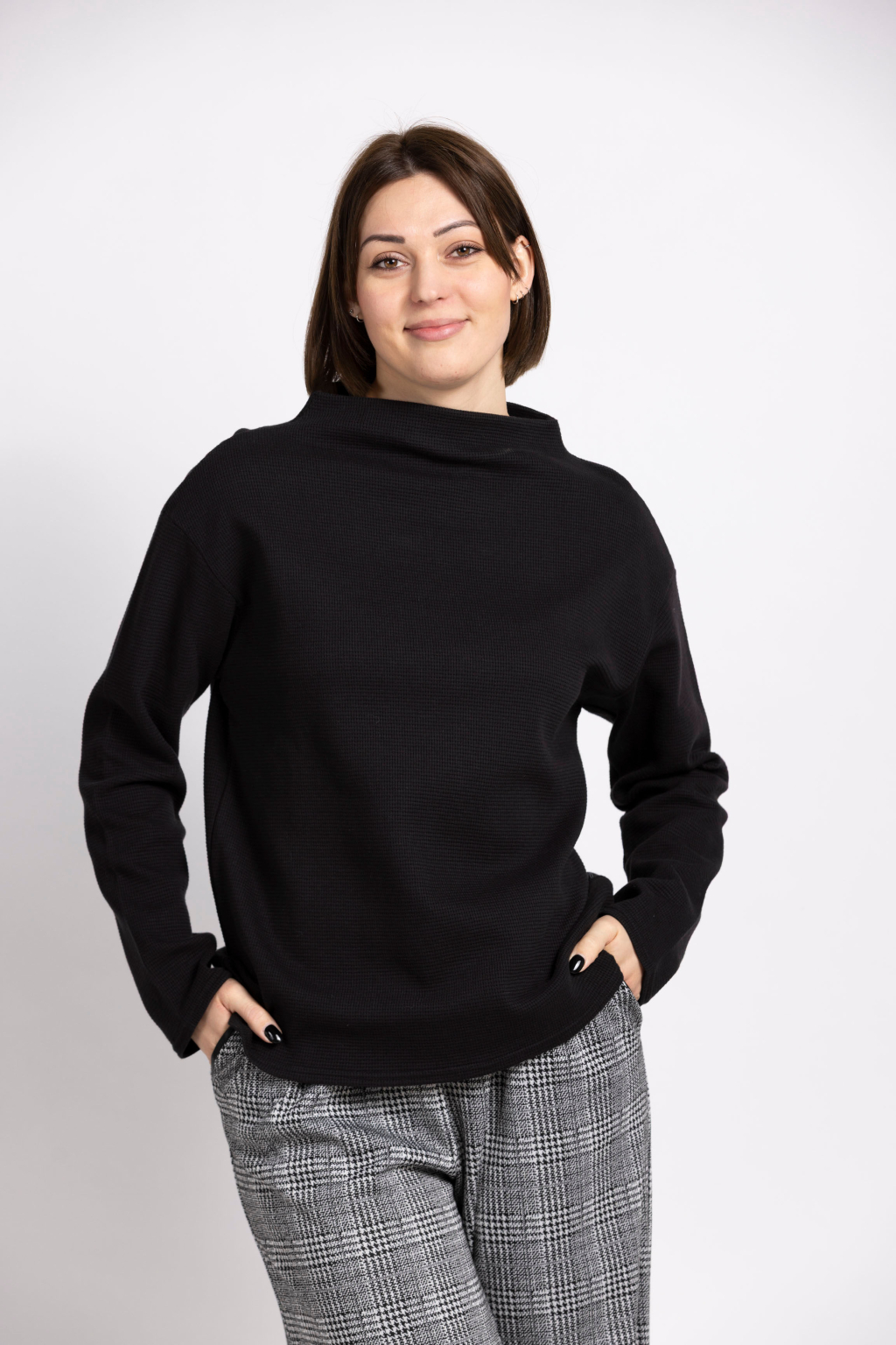 DÁMSKÁ ELEGANTNÍ MIKINA Z VAFLOVINY - ČERNÁ