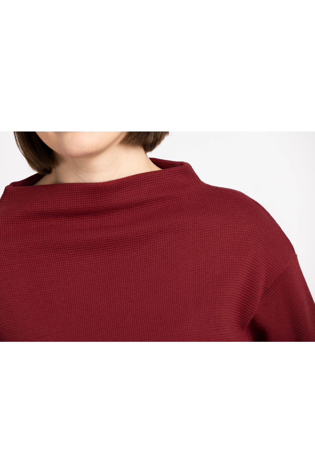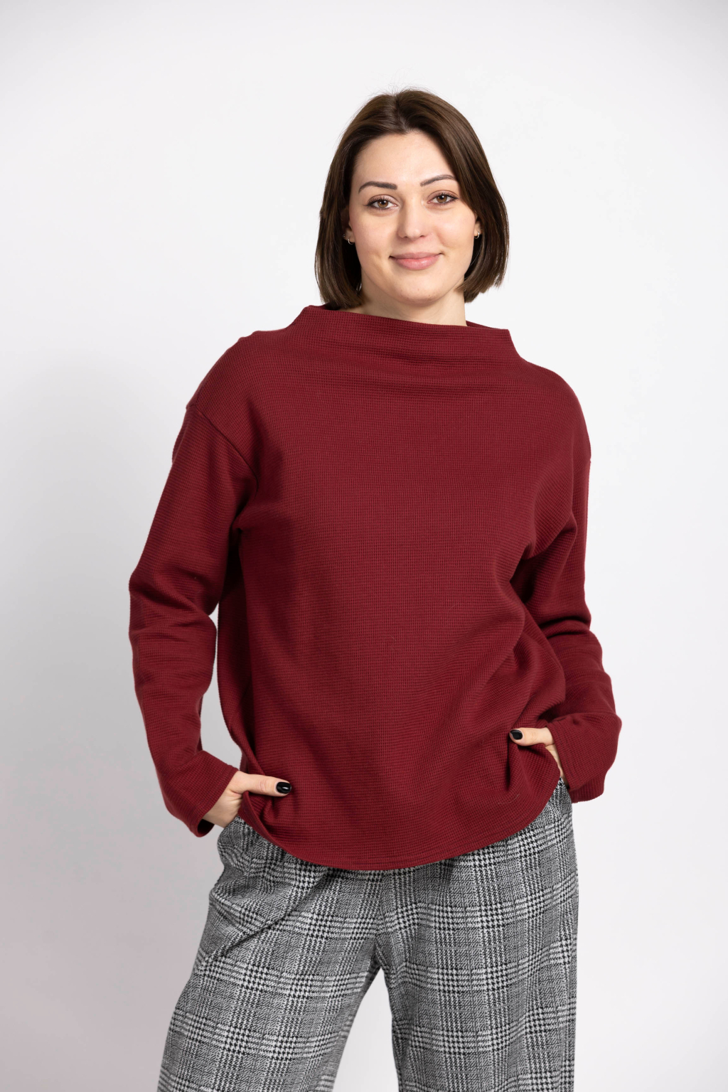 DÁMSKÁ ELEGANTNÍ MIKINA Z VAFLOVINY - VÍNOVÁ