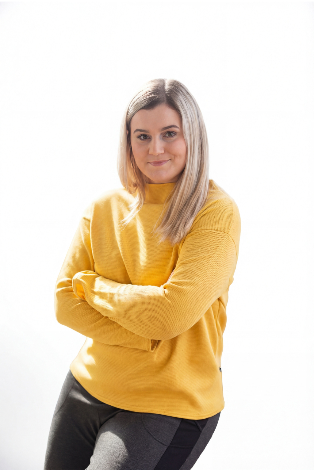 DÁMSKÁ ELEGANTNÍ MIKINA Z VAFLOVINY - ŽLUTÁ