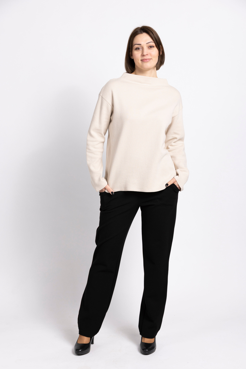 Střih, který lichotí – Kalhoty jsou navrženy tak, aby seděly na různé typy postav. Naše zákaznice si pochvalují, že v nich vydrží pohodlně celý den – ať už za pracovním stolem, na schůzkách nebo za volantem.