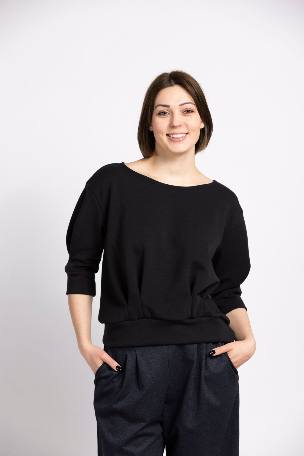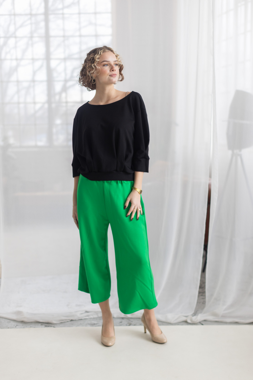 ELEGANTNÍ TOP Z VISKÓZY S 3/4 RUKÁVEM - ČERNÝ