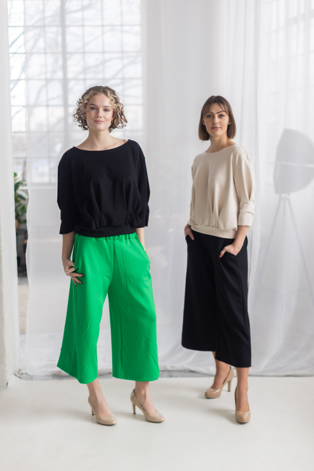 Velice dobře vypadá i v kombinaci s kulotkami (3/4 kalhotami) ze stejného materiálu.