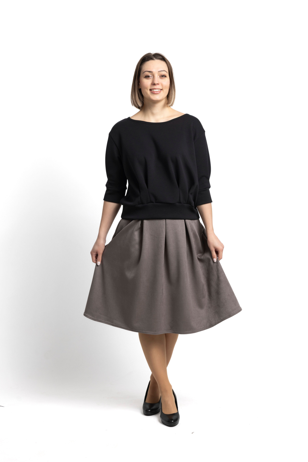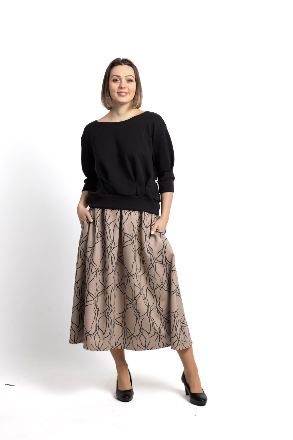 Stejně úžasná je kombinace s naší elegantní dlouhou sukní ze scuby nebo s business kalhotami z naší kolekce :-)