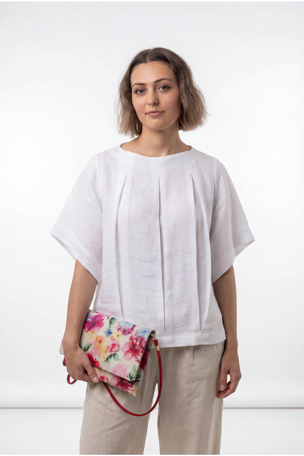 LNĚNÁ BLŮZA SE SKLADY - BÍLÁ