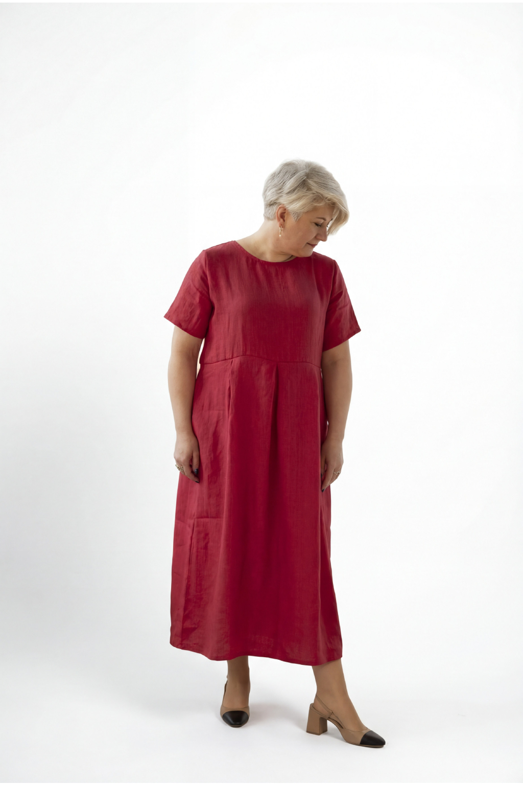 LNĚNÉ ŠATY DLOUHÉ - ČERVENÉ