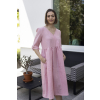 LNĚNÉ ŠATY ŘASENÉ - SVĚTLE RŮŽOVÉ
