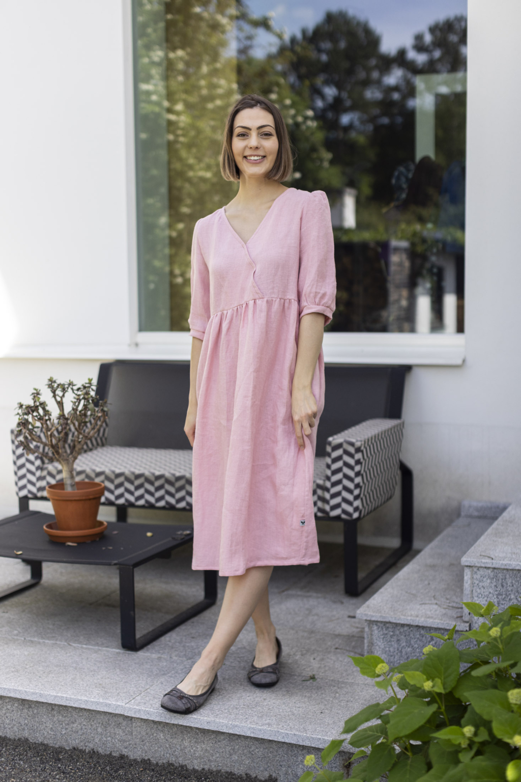 LNĚNÉ ŠATY ŘASENÉ - SVĚTLE RŮŽOVÉ