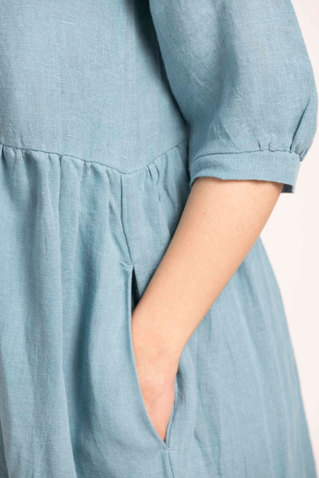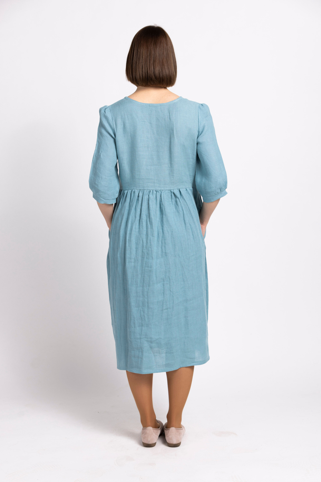 - Důležité: Len není pružný materiál – šaty musí být volnější, aby umožňovaly příjemný pohyb. Nesmí být upnuté.