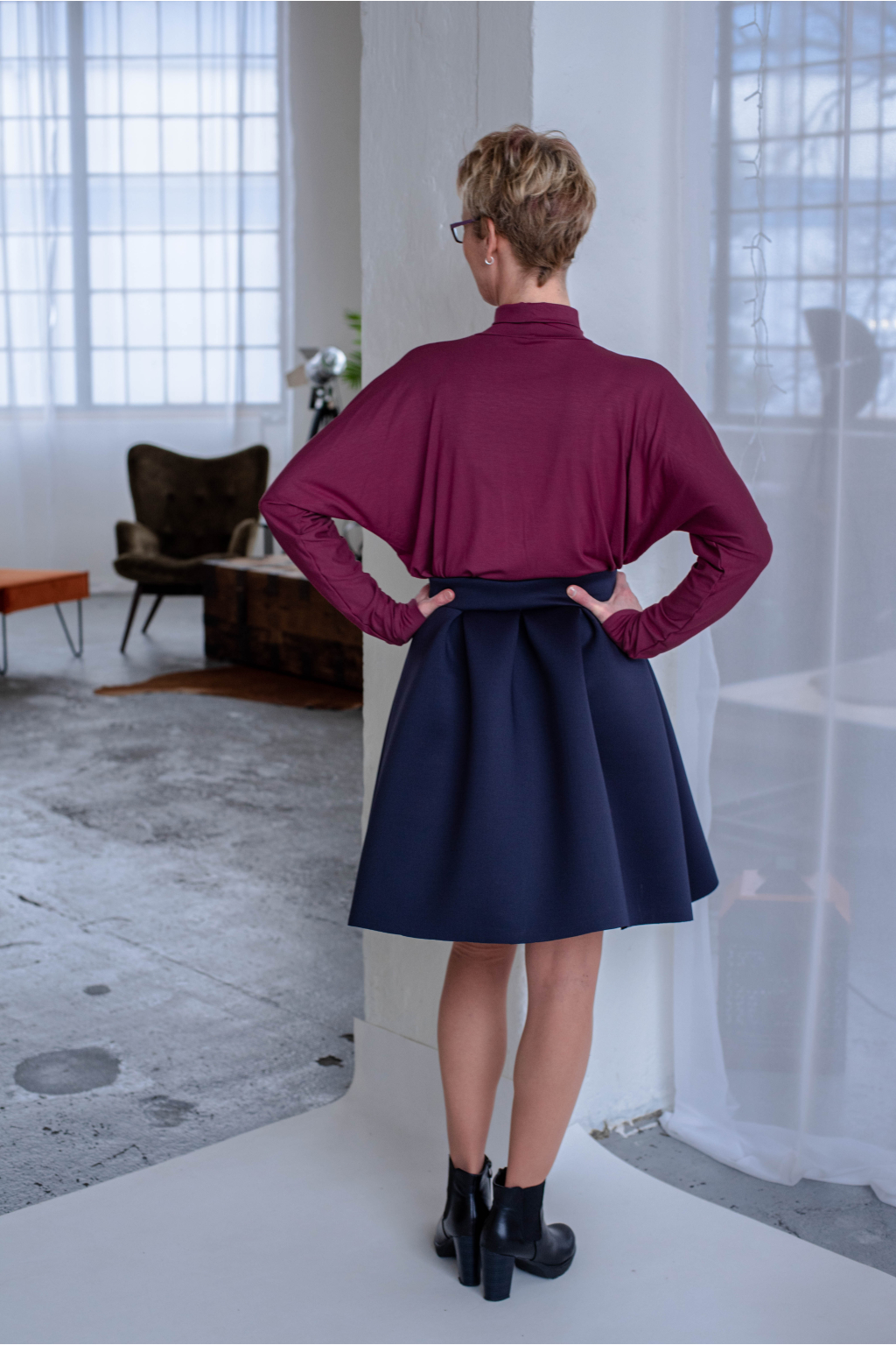 NABÍRANÁ SUKNĚ Z NEOPRENU - TMAVĚ MODRÁ